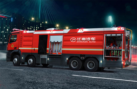 奔馳Arocs短駕駛室,駕駛室四點懸掛,液壓翻轉(zhuǎn),中控鎖,電動調(diào)節(jié)可加熱后視鏡,廂體前部設置有**乘員室,可乘作戰(zhàn)狀態(tài)消防員 7 人 |