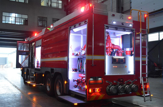 后置泵,泵房左右兩側、器材箱左右側均有新款易拉高強度鋁合金卷簾門。 |