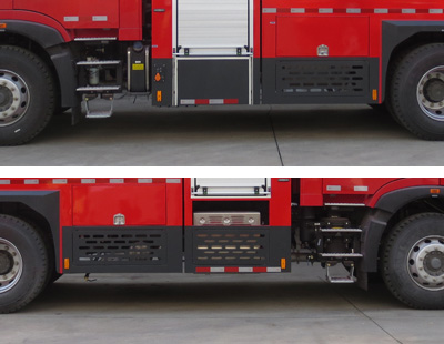 選裝局部造型;罐體容積:7.9立方米,水罐尺寸:2235×2440×1520mm。整體式側(cè)防護(hù)結(jié)構(gòu),后防護(hù)裝置材料:Q235,截面尺寸:120×120mm,與車輛連接方式:螺栓連接,后防護(hù)離地高度:420mm。ABS系統(tǒng)**器生產(chǎn)企業(yè)/型號(hào)為威伯科(上海)管理有限公司/4460046300。主要專用裝置有消防泵、消防炮。 | |||