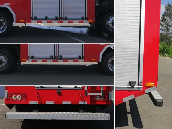 罐體總?cè)莘e:2.4立方米,水罐容積:1.35立方米,水罐尺寸:680×1910×1090mm,泡沫液罐容積:1.05立方米,泡沫液罐尺寸:525×1910×1090mm。整體式側(cè)防護(hù)結(jié)構(gòu),后防護(hù)裝置材料:Q235,截面尺寸:100×100mm,與車輛連接方式:螺栓連接,后防護(hù)離地高度:460mm。ABS系統(tǒng)型號(hào):ABS-E,生產(chǎn)企業(yè):威伯科汽車**系統(tǒng)(**)有限公司;ABS系統(tǒng)型號(hào):ABS-VI.E,生產(chǎn)企業(yè):廣州瑞立科密汽車電子股份有限公司。主要專用裝置有消防泵、消防炮。 | |||