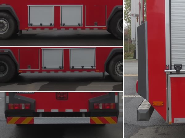 罐體總?cè)莘e:23.941立方米,水罐容積:21.0立方米,水罐尺寸:6225×2440×1450mm,泡沫液罐容積:2.941立方米,泡沫液罐尺寸:870×2440×1450mm。整體式側(cè)防護(hù)結(jié)構(gòu),后防護(hù)裝置材料:Q235,截面尺寸:120×120mm,與車輛連接方式:螺栓連接,后防護(hù)離地高度:395mm。ABS系統(tǒng)**器生產(chǎn)企業(yè)/型號為威伯科(上海)管理有限公司/4460046300。主要專用裝置有消防泵、消防炮。 | |||