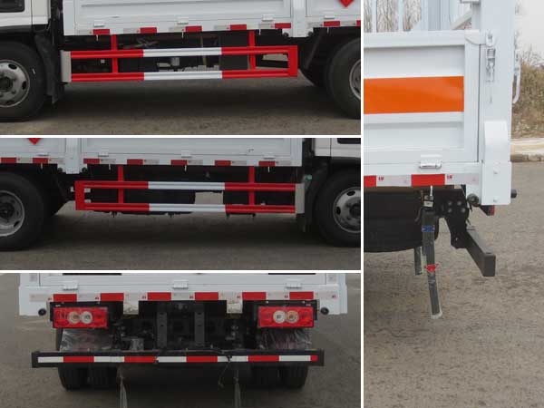 隨底盤選裝駕駛室;選裝廂體外觀,選裝無柵欄;選裝起重尾板(收起狀態(tài)水平長(zhǎng)度為280mm),尾板質(zhì)量為350kg;該車用于運(yùn)輸具有**容器(瓶)包裝的貨物,類項(xiàng)號(hào)為2.1,2.2;該車為危險(xiǎn)品貨物運(yùn)輸車;僅采用前輪盤式制動(dòng)器,前置排氣管,子午線輪胎,限速裝置的底盤,限速80km/h;轉(zhuǎn)向輪安裝爆胎應(yīng)急防護(hù)裝置;發(fā)動(dòng)機(jī)F2.8NS6B131,Q28-130E60,F2.8NS6B150,D30TCIF1,F3.8NS6B156,CY4SK261,4J28TC6,F2.8NS6B156,Q28-130C60對(duì)應(yīng)油耗申報(bào)值均為11.1L/100km;該車安裝具有衛(wèi)星定位功能的行駛記錄儀;ABS系統(tǒng)型號(hào):ABS-VI.E;生產(chǎn)企業(yè):廣州瑞立科密汽車電子股份有限公司.ABS系統(tǒng)型號(hào):ABS-E;生產(chǎn)企業(yè):威伯科汽車**系統(tǒng)(**)有限公司;側(cè)面防護(hù)及后下部防護(hù)裝置材料材質(zhì):Q235,連接方式:焊接加螺栓連接;后下部防護(hù)裝置斷面尺寸(寬×高):50×100(mm),離地高度:460mm;該車選裝ETC. | |||