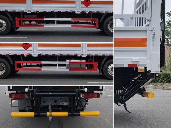 EBS系統(tǒng)**器生產(chǎn)企業(yè)/型號(hào)為威伯科(上海)管理有限公司/EBS3;安裝有限速裝置;限速裝置限速(km/h):80;安裝有具有衛(wèi)星定位功能的行駛記錄儀;選裝廂體外觀,選裝后部結(jié)構(gòu);起重尾板為選裝件(收起狀態(tài)水平長(zhǎng)度為290mm),尾板質(zhì)量為550kg;選裝不同廠家尾板以及尾板外觀;該車選裝ETC車載裝置;發(fā)動(dòng)機(jī)/油耗申報(bào)值(L/100km)對(duì)應(yīng)關(guān)系為:MC07.25-60/29.42,MC07.31-60/29.42;側(cè)面防護(hù)及后下部防護(hù)裝置材料材質(zhì):Q235,側(cè)面防護(hù)連接方式:焊接連接;后防護(hù)連接方式:焊接加螺栓連接;后下部防護(hù)裝置斷面尺寸(直徑):Φ120(mm),離地高度:490mm;選裝不帶起重尾板時(shí),后下部防護(hù)裝置連接方式:焊接連接,斷面尺寸(寬×高):60×120(mm),離地高度:460mm;運(yùn)輸**容器(瓶)包裝的介質(zhì)類項(xiàng)號(hào)為:2.1,2.2;該車為危險(xiǎn)品貨物運(yùn)輸車;僅采用前輪盤式制動(dòng)器,前置排氣管,子午線輪胎;轉(zhuǎn)向輪安裝爆胎應(yīng)急防護(hù)裝置;后軸采用空氣懸架. | |||