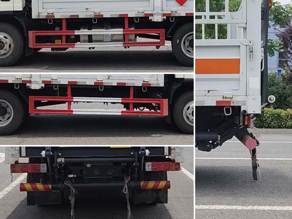 ABS防抱死制動系統(tǒng)生產(chǎn)廠家/型號:1.廣州瑞立科密汽車電子股份有限公司/CM4XL-4S/4M;2.浙江萬安科技股份有限公司/VIE ABS-II;安裝有限速裝置;限速裝置限速(km/h):80;安裝有具有衛(wèi)星定位功能的行駛記錄儀;隨底盤選裝駕駛室,隨底盤選裝燃油箱,電瓶,尿素罐,儲氣筒左右安裝位置;選裝廂體外觀,選裝無柵欄,選裝后部結(jié)構(gòu);起重尾板為選裝件(收起狀態(tài)水平長度為280mm),尾板質(zhì)量為350kg;選裝不同廠家尾板以及尾板外觀;僅采用底盤3300mm軸距;該車選裝ETC車載裝置;發(fā)動機(jī)/油耗申報(bào)值(L/100km)對應(yīng)關(guān)系為:F2.8NS6B156/11.2,CA4DB1-13E6/11.0,WP2.3NQ130E61/11.2,WP2.3NQ120E61/11.2,H20-120E60/10.09;側(cè)面防護(hù)及后下部防護(hù)裝置材料材質(zhì):Q235,側(cè)面防護(hù)連接方式:焊接連接;后下部防護(hù)裝置連接方式:焊接加螺栓連接,斷面尺寸(直徑):Φ110(mm),離地高度:450mm;不帶起重尾板時(shí),后防護(hù)連接方式:焊接連接;后下部防護(hù)裝置斷面尺寸(寬×高):50×100(mm),離地高度:460mm;運(yùn)輸**容器(瓶)包裝的介質(zhì)類項(xiàng)號為:2.1,2.2;該車為危險(xiǎn)品貨物運(yùn)輸車;僅采用前輪盤式制動器,前置排氣管,子午線輪胎;轉(zhuǎn)向輪安裝爆胎應(yīng)急防護(hù)裝置; | |||
