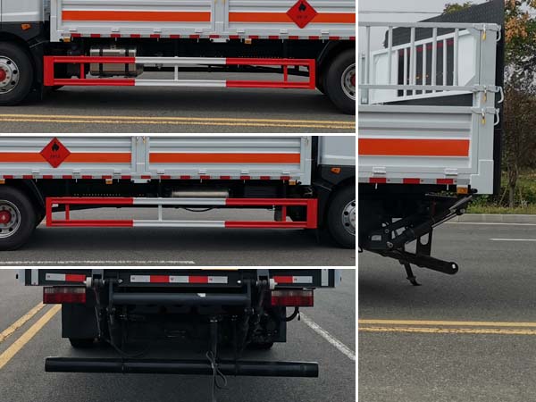 EBS系統(tǒng)生產(chǎn)廠家,型號:襄陽東風(fēng)隆誠機(jī)械有限責(zé)任公司,EBS/ESC-d.;安裝有限速裝置,限速裝置限速(km/h):80;安裝有具有衛(wèi)星定位功能的行駛記錄儀;隨底盤選裝駕駛室;隨底盤選裝燃油箱,電瓶,尿素罐,儲氣筒左右安裝位置;選裝廂體外觀,選裝無柵欄,選裝后部結(jié)構(gòu);起重尾板為選裝件(收起狀態(tài)水平長度為290mm),尾板質(zhì)量為550kg;選裝不同廠家尾板以及尾板外觀;該車選裝ETC車載裝置;發(fā)動機(jī)/油耗申報值(L/100km)對應(yīng)關(guān)系為:B6.2NS6B230/26.6,D4.5NS6B220/26.6,YCS04200-68/26.6,CY4SK761/26.6;側(cè)面防護(hù)及后下部防護(hù)裝置材料材質(zhì):Q235,側(cè)面防護(hù)連接方式:焊接連接;后下部防護(hù)裝置連接方式:焊接加螺栓連接,斷面尺寸(直徑):Φ120(mm),離地高度:330mm;不帶起重尾板時,后防護(hù)連接方式:焊接加螺栓連接;后下部防護(hù)裝置斷面尺寸(寬×高):50×120(mm),離地高度:470mm;運(yùn)輸**容器(瓶)包裝的介質(zhì)類項(xiàng)號為:2.1,2.2;該車為危險品貨物運(yùn)輸車;僅采用前輪盤式制動器,前置排氣管,子午線輪胎;轉(zhuǎn)向輪安裝爆胎應(yīng)急防護(hù)裝置;后軸采用空氣懸架. | |||