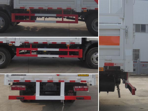 隨底盤選裝尾燈樣式;選裝廂體外觀,選裝無柵欄;選裝起重尾板(收起狀態(tài)水平長(zhǎng)度為280mm),尾板質(zhì)量為350kg;運(yùn)輸**容器(瓶)包裝的貨物;危險(xiǎn)貨物類項(xiàng)號(hào):2.1,2.2;該車為危險(xiǎn)品貨物運(yùn)輸車;僅采用前輪盤式制動(dòng)器,前置排氣管,子午線輪胎,限速裝置的底盤,限速80km/h;轉(zhuǎn)向輪安裝爆胎應(yīng)急防護(hù)裝置;發(fā)動(dòng)機(jī)WP2.3NQ130E61對(duì)應(yīng)油耗申報(bào)值為11.3L/100km;該車安裝具有衛(wèi)星定位功能的行駛記錄儀;ABS型號(hào)/廠家為:CM4XL-4S/4M /廣州瑞立科密汽車電子股份有限公司,ABS型號(hào)/廠家:VIE ABS-Ⅱ/浙江萬安科技股份有限公司;側(cè)面防護(hù)及后下部防護(hù)裝置材料材質(zhì):Q235;后下部防護(hù)裝置連接方式:焊接加螺栓連接,斷面尺寸(寬×高):50×100(mm),離地高度:460mm;裝起重尾板時(shí),選裝圓形后防護(hù),斷面尺寸(直徑):Φ110(mm),離地高度:460mm;該車選裝ETC車載裝置. | |||