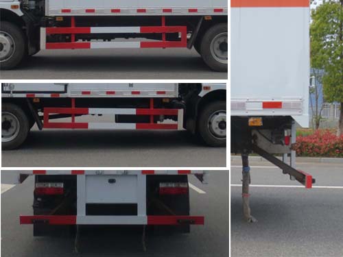 廂體頂部封閉,不可開啟;隨底盤選裝駕駛室,選裝輪輞樣式,選裝燃油箱,電瓶,尿素罐,儲氣筒左右安裝位置;廂體選裝瓦楞板結(jié)構(gòu),廂體側(cè)面選裝開門型式及位置或不帶側(cè)開門,選裝百葉窗;選裝起重尾板(收起狀態(tài)水平長度為290mm),尾板質(zhì)量為450kg;選裝不同廠家尾板以及尾板外觀;僅采用底盤3800mm軸距;運輸具有**容器(瓶)包裝的介質(zhì)類項號為3;該車為危險品貨物運輸車;僅采用前輪盤式制動器,前置排氣管,子午線輪胎,限速裝置的底盤,限速80km/h;轉(zhuǎn)向輪安裝爆胎應(yīng)急防護裝置;發(fā)動機YCS04190-68,D25TCIF1,D30TCIF1,D40TCIF1,NV30-C6D,CY4SK261,CY4SK361,YCY30165-60對應(yīng)油耗申報值均為:21.3L/100km;該車安裝具有衛(wèi)星定位功能的行駛記錄儀;ABS型號/廠家:ABS型號:ABS/ASR-24V-4S/4M,廠家:襄陽東風(fēng)隆誠機械有限責(zé)任公司;側(cè)面防護及后下部防護裝置材料材質(zhì):Q235,連接方式:焊接加螺栓連接;后下部防護裝置斷面尺寸(寬×高):45×100(mm),離地高度:460mm;選裝圓形后防護,連接方式:焊接加螺栓連接;后下部防護裝置斷面尺寸為:Φ110mm,離地高度:400mm;該車型可選裝ETC車載裝置. | |||