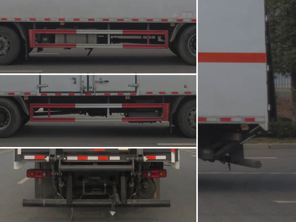 車(chē)廂頂部封閉不可開(kāi)啟;EBS型號(hào)/廠家:EBS5/東科克諾爾商用車(chē)制動(dòng)系統(tǒng)(十堰)有限公司;安裝有限速裝置;限速裝置限速(km/h):80;安裝有具有衛(wèi)星定位功能的行駛記錄儀;選裝描述:隨底盤(pán)選裝駕駛室,選裝后處理隔熱罩;選裝廂體開(kāi)門(mén)型式及位置;選裝瓦楞板結(jié)構(gòu)廂體;選裝后部結(jié)構(gòu);選裝不帶起重尾板,尾板質(zhì)量為550kg;起重尾板收起狀態(tài)水平長(zhǎng)度為290mm;選裝不同廠家尾板及尾板樣式;該車(chē)選裝ETC車(chē)載裝置;發(fā)動(dòng)機(jī)/油耗值(L/100km)對(duì)應(yīng)關(guān)系為:B6.2NS6B230/36.0,B6.2NS6B245/36.0;整備質(zhì)量(kg)/額定載質(zhì)量(kg)/準(zhǔn)乘人數(shù)(人)對(duì)應(yīng)關(guān)系為:9300/16070/2,9300/16005/3,9600/15770/2,9600/15705/3;側(cè)面防護(hù)及后下部防護(hù)裝置材料材質(zhì):Q235,側(cè)面防護(hù)連接方式:焊接連接;后下部防護(hù)裝置連接方式:焊接加螺栓連接,斷面尺寸(直徑):Φ120mm,離地高度:450mm;選裝不帶尾板時(shí),后下部防護(hù)裝置斷面尺寸(寬×高):60×120(mm),離地高度:450mm;運(yùn)輸**容器(瓶)包裝的貨物;危險(xiǎn)貨物類(lèi)項(xiàng)號(hào):3;其他說(shuō)明:該車(chē)為危險(xiǎn)品貨物運(yùn)輸車(chē);僅采用前輪盤(pán)式制動(dòng)器,前置排氣管,子午線輪胎;后軸為空氣懸架;轉(zhuǎn)向輪安裝爆胎應(yīng)急防護(hù)裝置; | |||