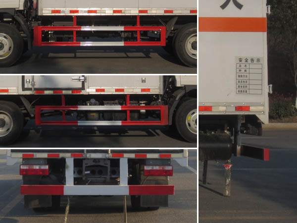 廂體頂部封閉,不可開啟;廂體側(cè)面選裝開門型式和位置,選裝不帶側(cè)開門;該車型可選裝ETC車載裝置;該車用于運(yùn)輸具有**容器(瓶)包裝的危險(xiǎn)貨物類項(xiàng)號:1.1 D,1.1B,1.1G ,1.1C,1.3C,1.4G;運(yùn)送危險(xiǎn)貨物車輛的類型:EX/Ⅲ型車輛;僅采用前輪盤式制動(dòng)器,前置排氣管,子午線輪胎,限速裝置的底盤,限速80km/h;轉(zhuǎn)向輪安裝爆胎應(yīng)急防護(hù)裝置;發(fā)動(dòng)機(jī)與油耗申報(bào)值(L/100km)對應(yīng)關(guān)系為:WP2.3NQ130E61/15.7;該車安裝具有衛(wèi)星定位功能的行駛記錄儀;ABS型號:CM4XL-4S/4M,VIE ABS-Ⅱ;ABS生產(chǎn)企業(yè):廣州瑞立科密汽車電子股份有限公司,浙江萬安科技股份有限公司;側(cè)面防護(hù)及后下部防護(hù)裝置材料材質(zhì):Q235,側(cè)面防護(hù)連接方式:焊接連接;后下部防護(hù)裝置連接方式:焊接連接,斷面尺寸(寬×高):50×100(mm),離地高度:450mm. | |||