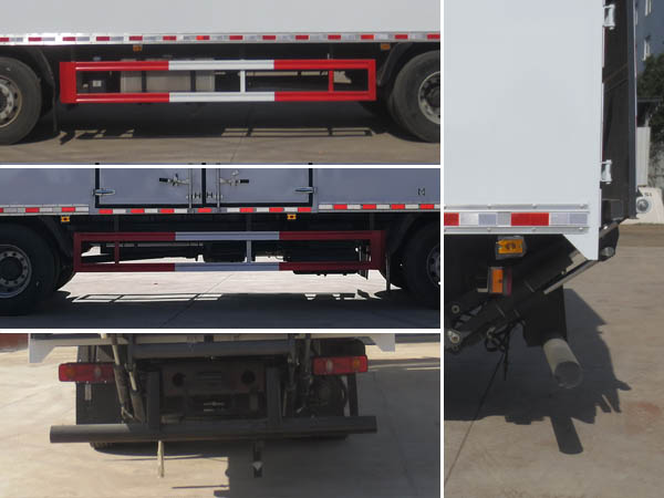 車廂頂部封閉不可開啟;EBS時配備盤式制動器、B6.2NS6B245發(fā)動機,EBS型號/廠家:EBS5/東科克諾爾商用車制動系統(tǒng)(十堰)有限公司;安裝有限速裝置;限速裝置限速(km/h):80;安裝有具有衛(wèi)星定位功能的行駛記錄儀;選裝描述:隨底盤選裝駕駛室,選裝后處理隔熱罩;選裝廂體開門型式及位置;選裝瓦楞板結(jié)構(gòu)廂體以及開門型式和位置;,選裝后部結(jié)構(gòu);選裝不帶起重尾板,尾板質(zhì)量為550kg;選裝不同廠家尾板及尾板樣式;該車選裝ETC車載裝置;發(fā)動機/油耗值(L/100km)對應(yīng)關(guān)系為:B6.2NS6B230/36,B6.2NS6B245/36;整備質(zhì)量(kg)/額定載質(zhì)量(kg)/準乘人數(shù)(人)對應(yīng)關(guān)系為:9300/16070/2,9300/16005/3,9600/15770/2,9600/15705/3;所用材料材質(zhì)、連接方式以及后部防護裝置的主要尺寸參數(shù)(斷面尺寸和離地高度):側(cè)面防護及后下部防護裝置材料材質(zhì):Q235,側(cè)面防護連接方式:焊接連接;后下部防護裝置連接方式:焊接加螺栓連接,斷面尺寸(直徑):Φ120mm,離地高度:450mm;選裝不帶尾板時,后下部防護裝置斷面尺寸(寬×高):60×120(mm),離地高度:450mm;尾板、上下坡道(或類似裝置)收起狀態(tài)的水平長度(mm):起重尾板收起狀態(tài)水平長度為290mm;運輸**容器(瓶)包裝的貨物;危險貨物類項號:2.1,2.2;其他說明:該車為危險品貨物運輸車;僅采用前輪盤式制動器,前置排氣管,子午線輪胎;后軸為空氣懸架;轉(zhuǎn)向輪安裝爆胎應(yīng)急防護裝置; | |||