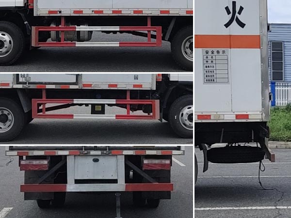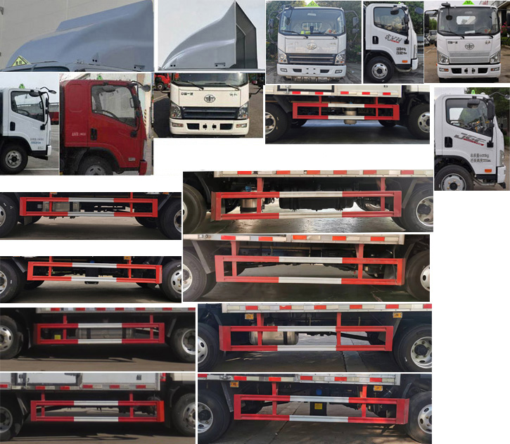 車廂頂部封閉不可開啟;ABS防抱死制動(dòng)系統(tǒng)生產(chǎn)廠家/型號(hào):1.廣州瑞立科密汽車電子股份有限公司/CM4XL-4S/4M;2.浙江萬安科技股份有限公司/VIE ABS-II;安裝有限速裝置,限速裝置限速(km/h):80;安裝有具有衛(wèi)星定位功能的行駛記錄儀;隨底盤選裝駕駛室,隨底盤選裝燃油箱,電瓶,尿素罐,儲(chǔ)氣筒左右安裝位置;選裝廂體開門型式及位置;選裝瓦楞板結(jié)構(gòu)廂體;選裝起重尾板(收起狀態(tài)水平長度為280mm),尾板質(zhì)量為350kg;選裝不同廠家尾板以及尾板外觀;該車選裝ETC車載裝置;發(fā)動(dòng)機(jī)/油耗申報(bào)值(L/100km)對(duì)應(yīng)關(guān)系為:WP2.3NQ120E61/15.2,WP2.3NQ130E61/15.2,CA4DB1-12E6/13.38,CA4DB1-13E6/13.38;側(cè)面防護(hù)及后下部防護(hù)裝置材料材質(zhì):Q235,側(cè)面防護(hù)連接方式:焊接連接;后下部防護(hù)裝置連接方式:焊接加螺栓連接,斷面尺寸(寬×高):45×100(mm),離地高度:495mm;選裝起重尾板時(shí),后防護(hù)連接方式:焊接加螺栓連接;斷面尺寸(直徑):Φ110(mm),離地高度:460mm;運(yùn)輸**容器(瓶)包裝的介質(zhì)類項(xiàng)號(hào)為:2.1,2.2;該車為危險(xiǎn)品貨物運(yùn)輸車;僅采用前輪盤式制動(dòng)器,前置排氣管,子午線輪胎;轉(zhuǎn)向輪安裝爆胎應(yīng)急防護(hù)裝置; | |||